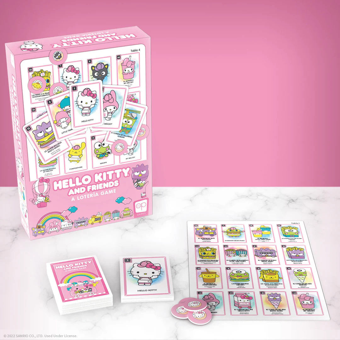 Loteria, an English and Spanish version of the popular game of Bingo! Players win by matching images on their tablas with iconic characters, items, and places.